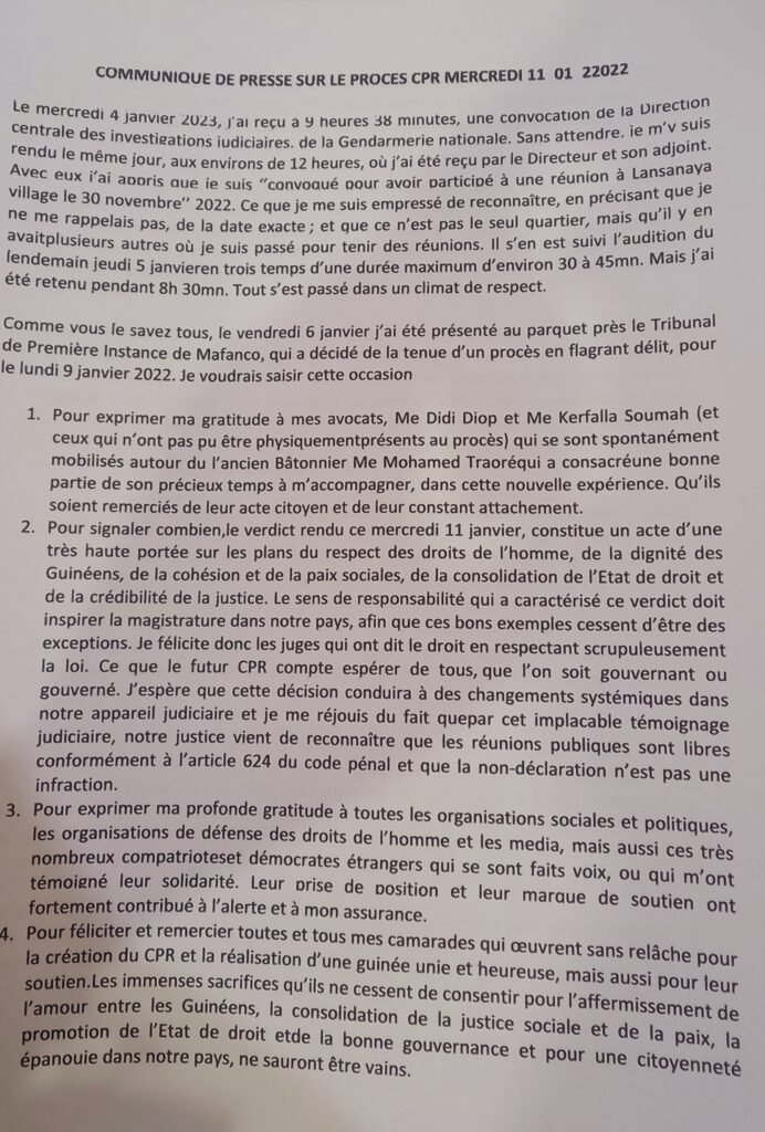 Après avoir été relaxé par la justice le 11janvier 2023 pour 《participation à une réunion non déclarée》, Abdourahmane Sano vient de faire sa déclaration publique. Dans ladite déclaration, cet acteur de la société un des initiateurs mouvement Citiyens Pour République (CPR) a fait le grand déballage ce vendredi 13janvier 2023.