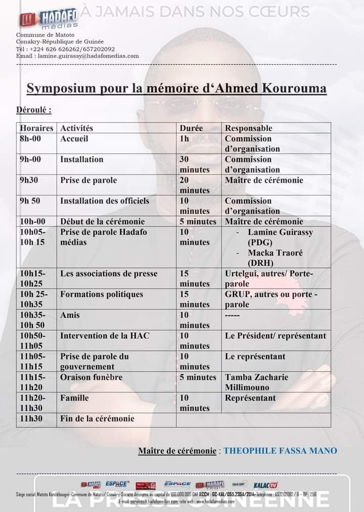 Le groupe Hadafo Médias organisera demain jeudi 05janvier 2023, un symposium pour leur collègue, Ahmed Kourouma, décédé en début de semaine.
