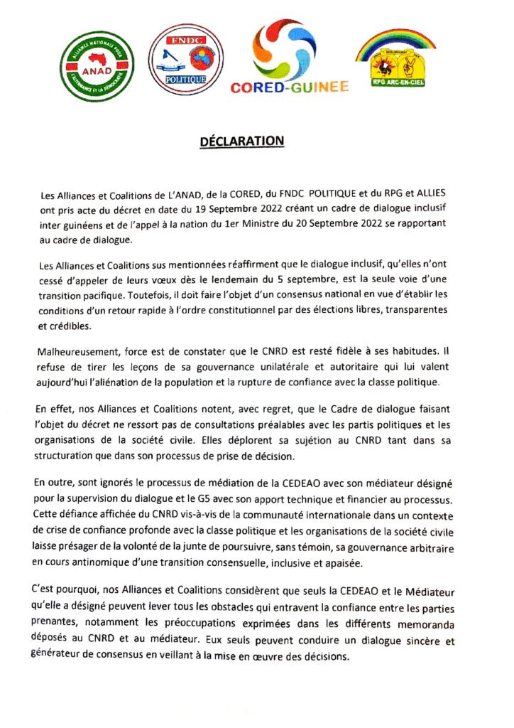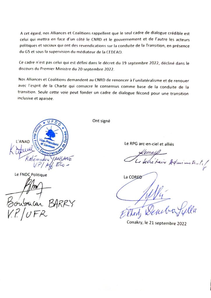Les Forces Vives de Guinée (FVG) appellent à une manifestation à partir du 5 septembre 2025 sur l’ensemble du territoire national et à l’étranger (déclaration).