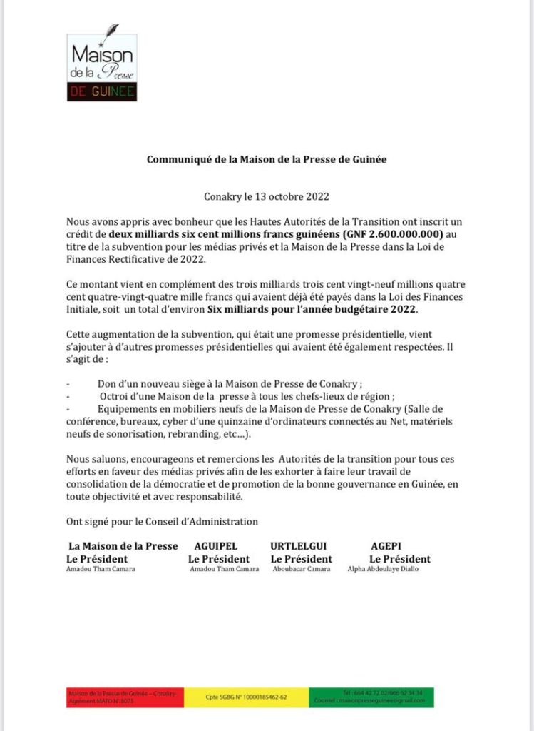 Subvention des medias: un crédit de plus de 2milliards inscrit dans la Loi de Finances Rectificative de 2022(communiqué MDP)